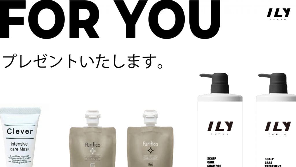 ILYではオープンを記念してご来店の皆さまに、ILYで使用中のヘアケア製品をご利用金額に応じて、もれなくプレゼントいたします。