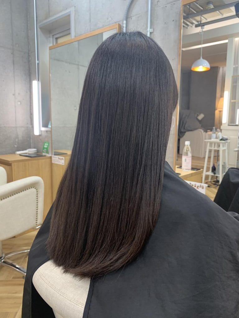 縮毛矯正ほど真っ直ぐに仕上げない自然なストレート。