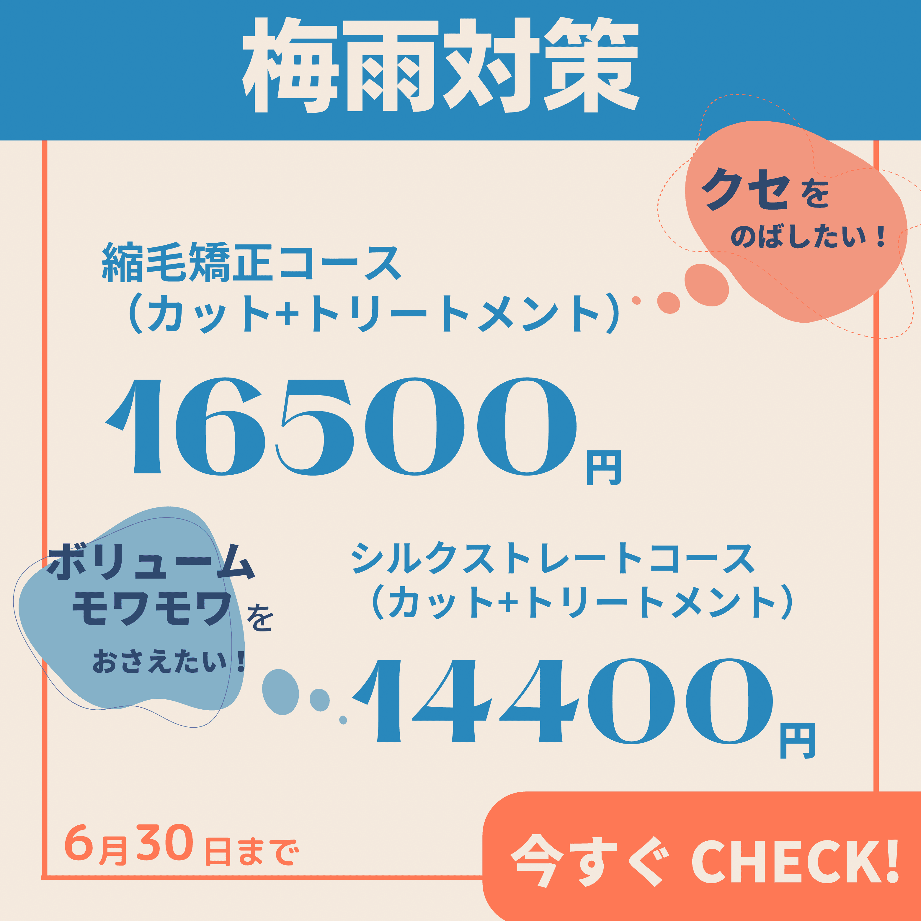 湿気やエイジングによる髪のくせや膨らみのストレスを解消しませんか? [“新しい”縮毛矯正キャンペーン] 美髪酸性ストレートで梅雨を安心☂️選べる3つのクーポンをご用意しました!ご自分に合ったものを […]