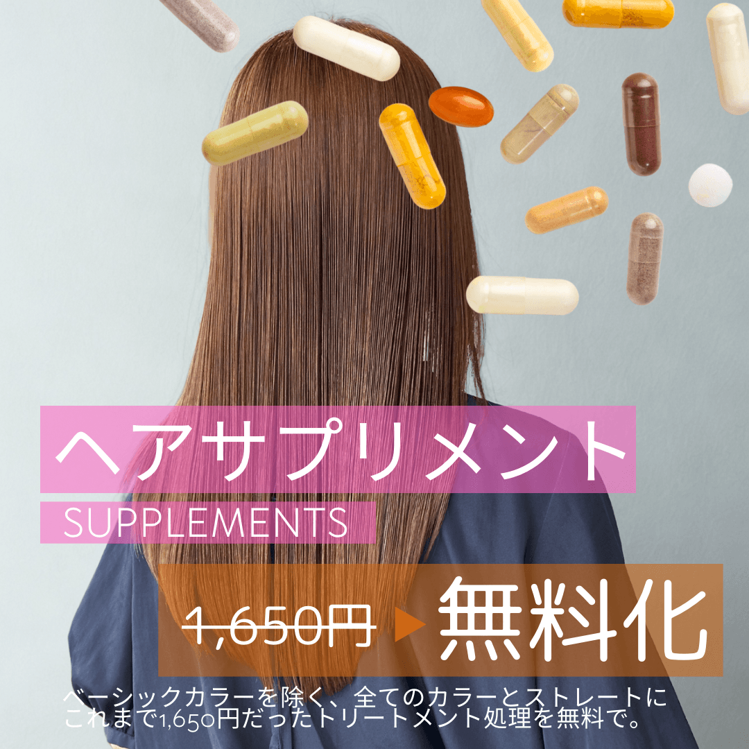 こんにちは、YUKIです。 このたび、お客様から大変ご好評をいただいていた 前処理トリートメントなどの「ヘアサプリメント」を、 カラー・ストレート全メニューをご利用のお客様に無料でご提供することになりました! (※ベーシ […]